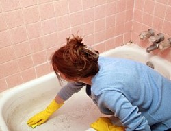 scrub - Rub (someone or something) hard so as to clean them, typically with a brush and water.