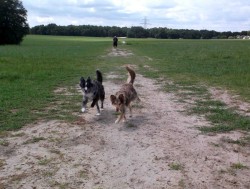 scamper - (especially of a small animal or child) To run with quick light steps, especially through fear or excitement