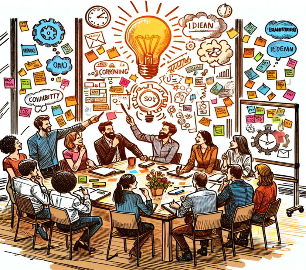 brainstorm - To think of ideas quickly and freely, often in a group.