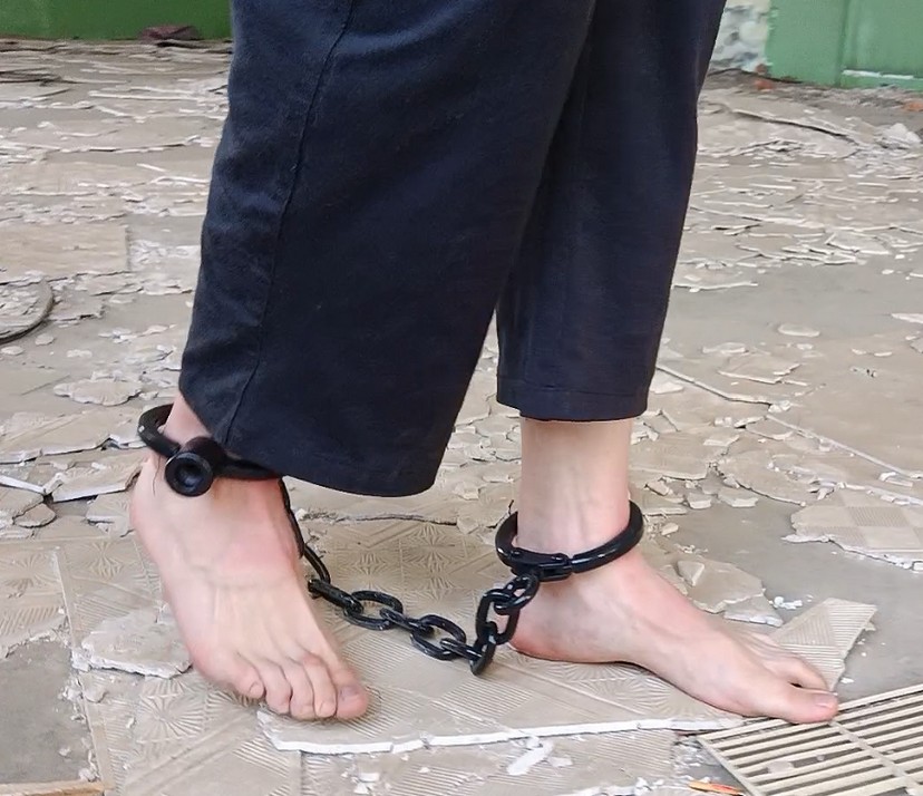 shackles - A device, such as a chain or cuff, designed to physically limit or control a person or thing's movement.
