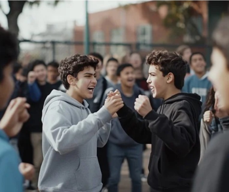intervene - To come between two people, groups, or events to prevent or change an outcome.