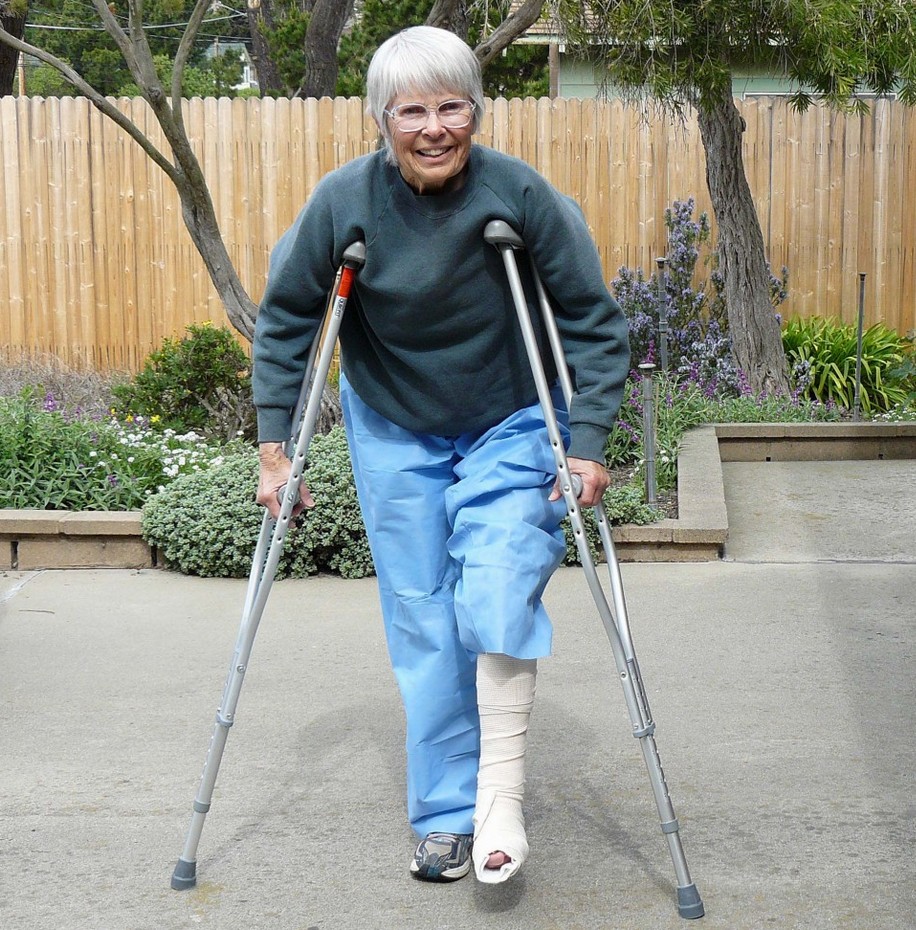 hobble - To walk in an awkward way, typically because of pain from an injury
