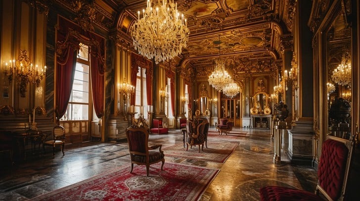 ornate - Heavily decorated with complex patterns or intricate details; elaborate in style, especially in language, art, or design.