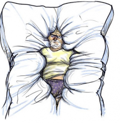 grumpy - Easily irritated and bad-tempered, usually from lack of sleep or feeling old