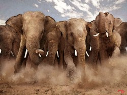 stampede - A sudden panicked rush of a number of horses, cattle, or other animals